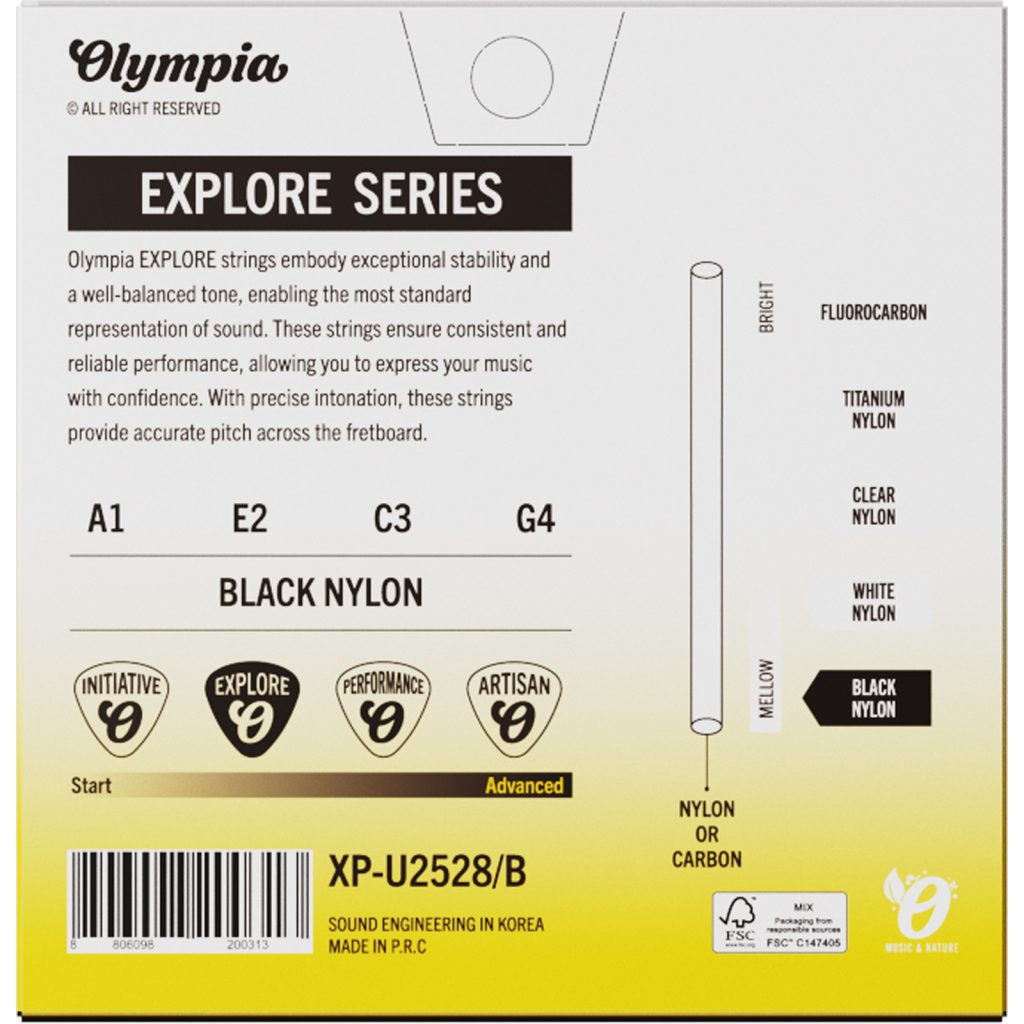 Olympia ukulele strings, clear nylon ukulele strings, soprano ukulele strings, concert ukulele strings, PF-U2528/C, Olympia Performance Series, professional ukulele strings, Korean ukulele strings, balanced ukulele tone, premium uke strings, clear nylon uke